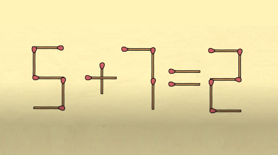 Test IQ cu bețe de chibrit. Este foarte simplu, nu ar trebui să vă ia mai mult de 10 secunde să îl rezolvați. Tot ce trebuie să faci este să muți un băț de chibrit pentru a corecta 5+7=2. Rezolvarea testului, care le poate da bătăi de cap unora, poate fi făcut-ă printr-o singură manevră simplă.