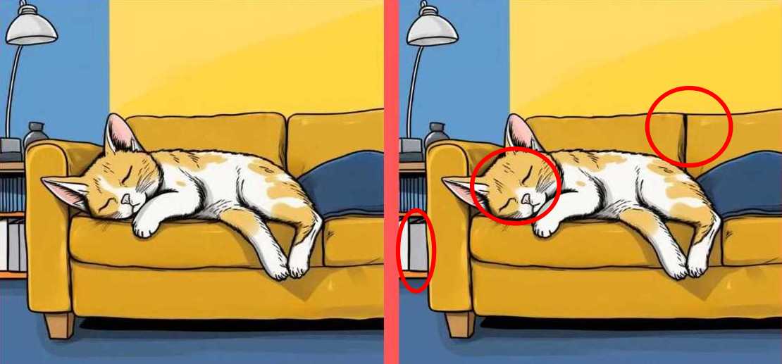Cei care au reușit deja să identifice toate cele trei diferențe sunt felicitați și aplaudați, ikar pentru cei care încă nu au reușit să deslușească diferențele iată exact locurile în care acestea apar. Mai exact, prima diferență se regăsește la nivelul cărților din noptieră. Cea de-a doua diferență se găsește la nivelul capului pisicii. Iar cea de-a treia la pernele de pe canapea.