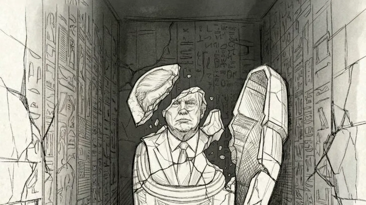 Potrivit CNN, imaginea îl prezintă pe Donald Trump sub forma unui sicriu de piatră, decorat cu hieroglife, amplasat într-un mormânt funerar. Drapelul SUA și Marele Sigiliu al Statelor Unite sunt sculptate pe sarcofag, care apare crăpat și în curs de distrugere. Deasupra desenului este menționat textul „Ca faraonul”, sugerând o paralelă între liderul american și conducătorii despotici din Antichitate.