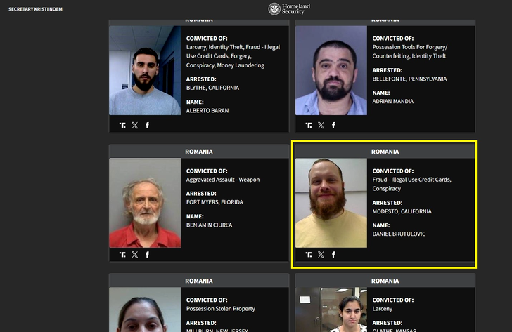 Daniel Brutulovic este doar unul dintre cei 124 de români prezentați pe site-ul DHS. Acesta a fost arestat în Modesto, California, sub acuzația de fraudă prin folosirea ilegală a cardurilor de credit, plănuită și executată împreună cu alte persoane, arată fanatik.ro.