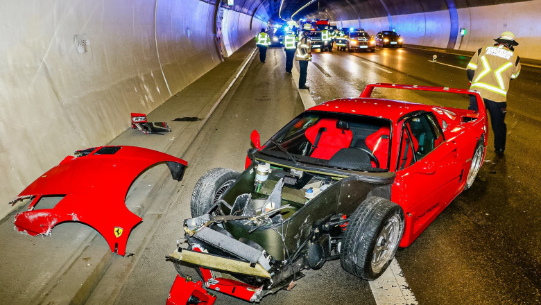 Ferarriul de lux F 40, vechi de 34 de ani, s-a izbit cu forță de peretele tunelului, potrivit NewsItaly24.com.