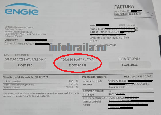 “Este de speriat, în sensul că, pentru un consum aproape dublu față de luna noiembrie, s-a emis acum o factură de 10 ori mai mare. Vă dau exemplul meu, pentru un consum de 91 metri cubi luna trecută s-au plătit 283 de lei, iar acum, la 190 de metri cubi, trebuie să plătesc 2.000 de lei. Cum să plătesc eu această sumă, să fac rată la bancă? Dar lunile viitoare? Ce ne așteaptă?”, a scris bărbatul publicaţiei locale infobraila.ro.