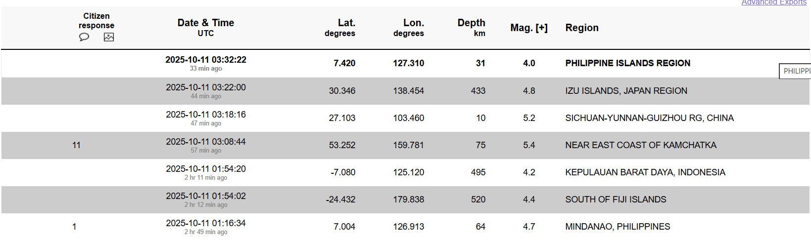 Acest nou seism a fost cauzat de mişcarea aceleiaşi falii, Fosa Filipineză, la o adâncime de 10 kilometri în largul coastelor oraşului Manay din provincia Davao Oriental, a declarat Teresito Bacolcol, şeful Institutului Filipinez de Seismologie şi Vulcanologie. „Al doilea este un cutremur separat, pe care îl numim cutremur dublu”, a declarat Bacolcol pentru Associated Press. „Ambele s-au produs în aceeaşi zonă, dar au magnitudini şi epicentre diferite”, a precizat el.