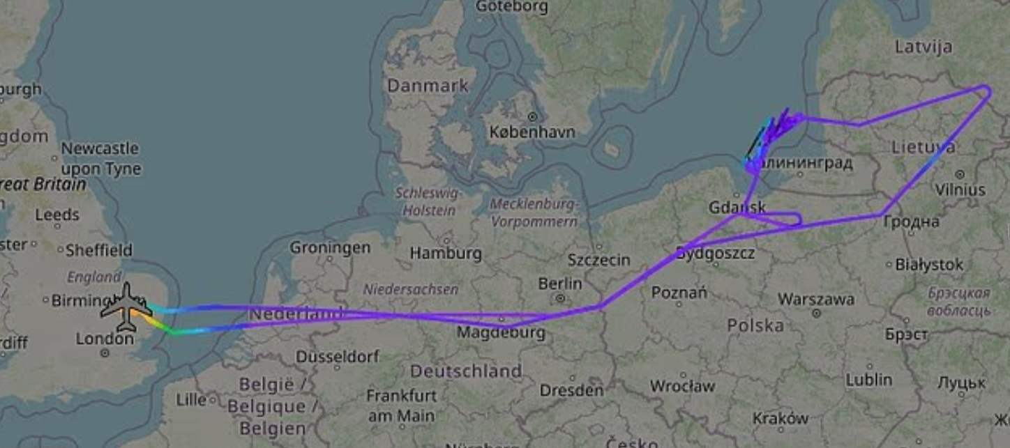 Aeronava RC-135U, aparținând Forțelor Aeriene ale Statelor Unite, a decolat din Marea Britanie și a efectuat o misiune de recunoaștere în jurul Kaliningradului, înainte de a reveni la bază.
