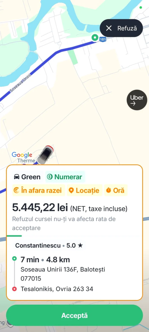 Iulian, șoferul de Uber a precizat că nu a acceptat cursa.