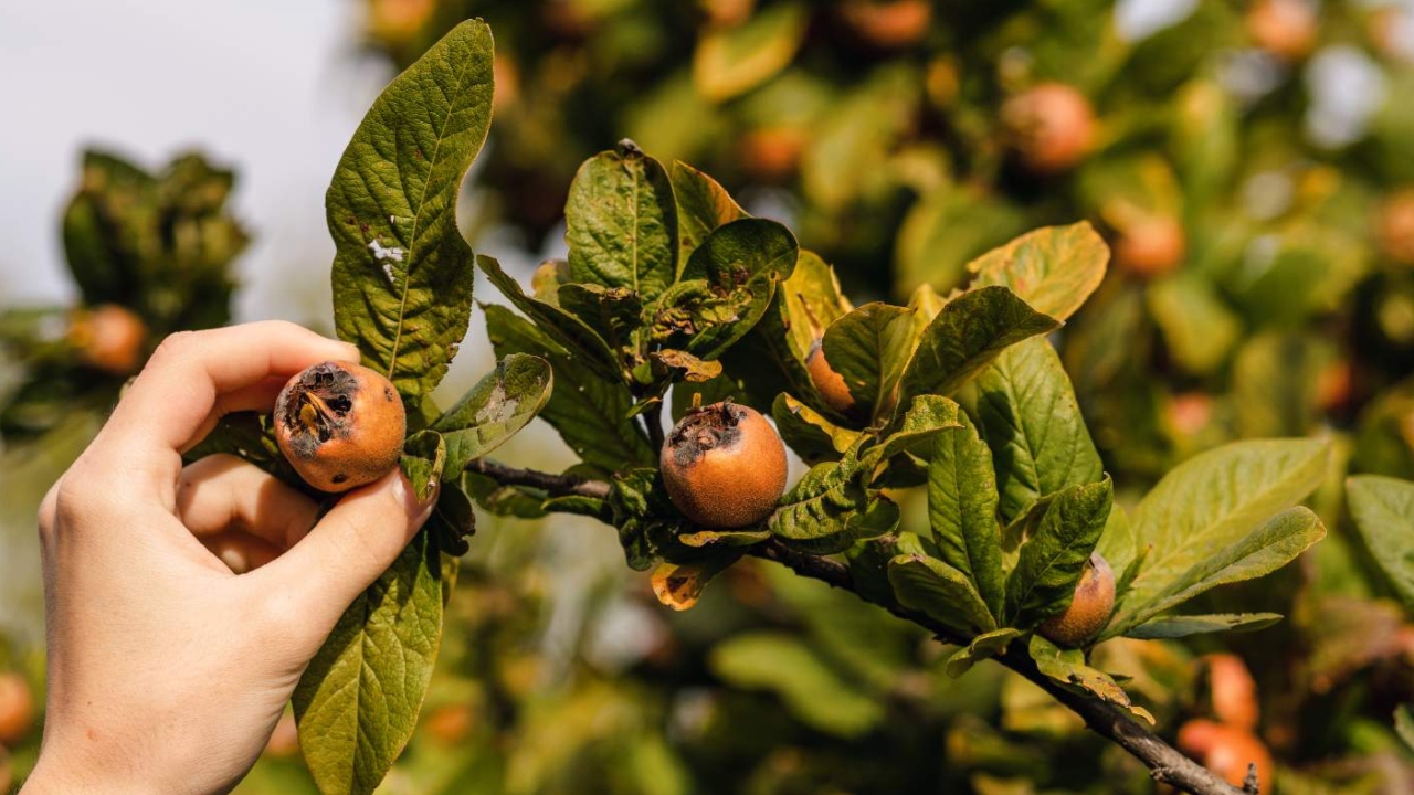 Tânărul a ales să planteze moșmon, un fruct despre care puțini români au auzit. Acesta se coace abia după primul ger, are o aromă ce amintește de măr, pară și gutuie și este cultivat de secole bune în Japonia.