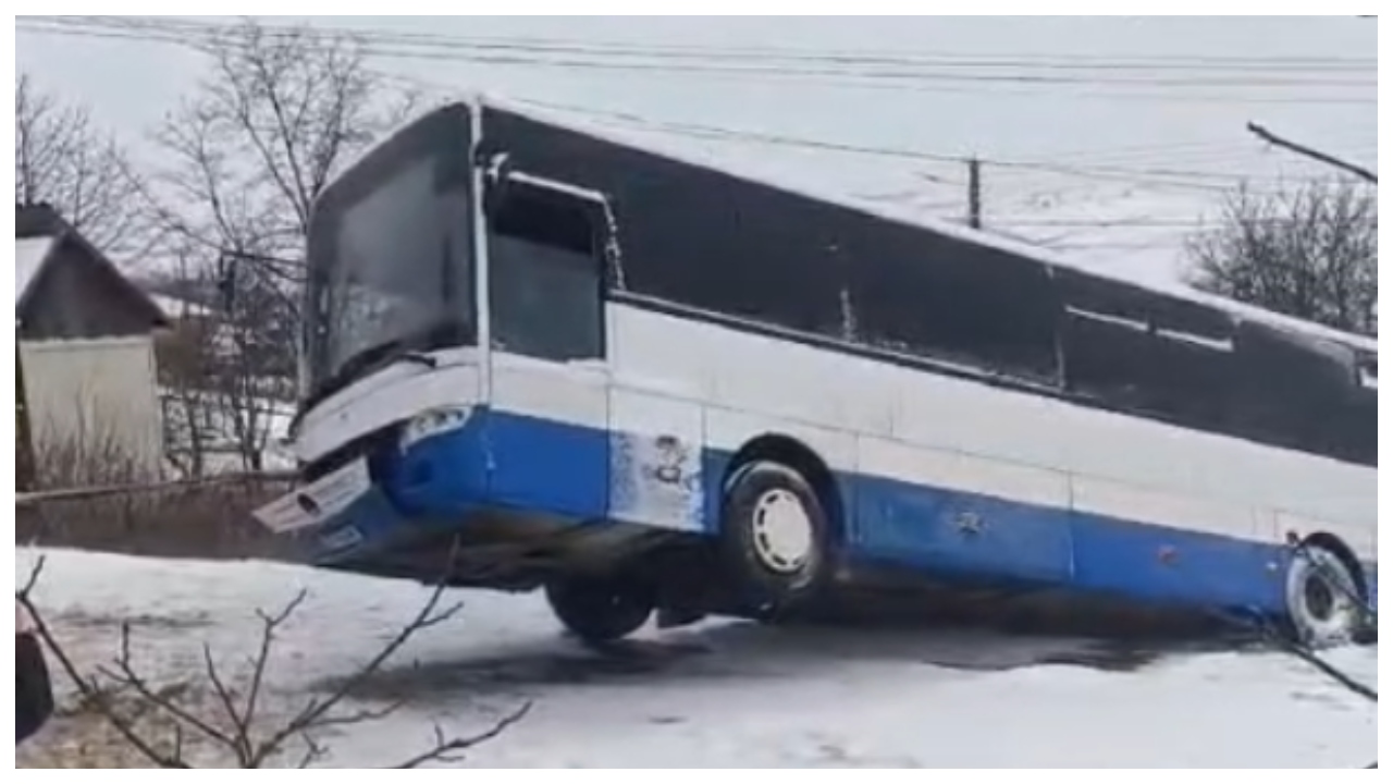 Accident grav și în județul Botoșani. Un autocar s-a răsturnat pe marginea drumului după ce a derapat pe șoseaua acoperită de zăpadă.