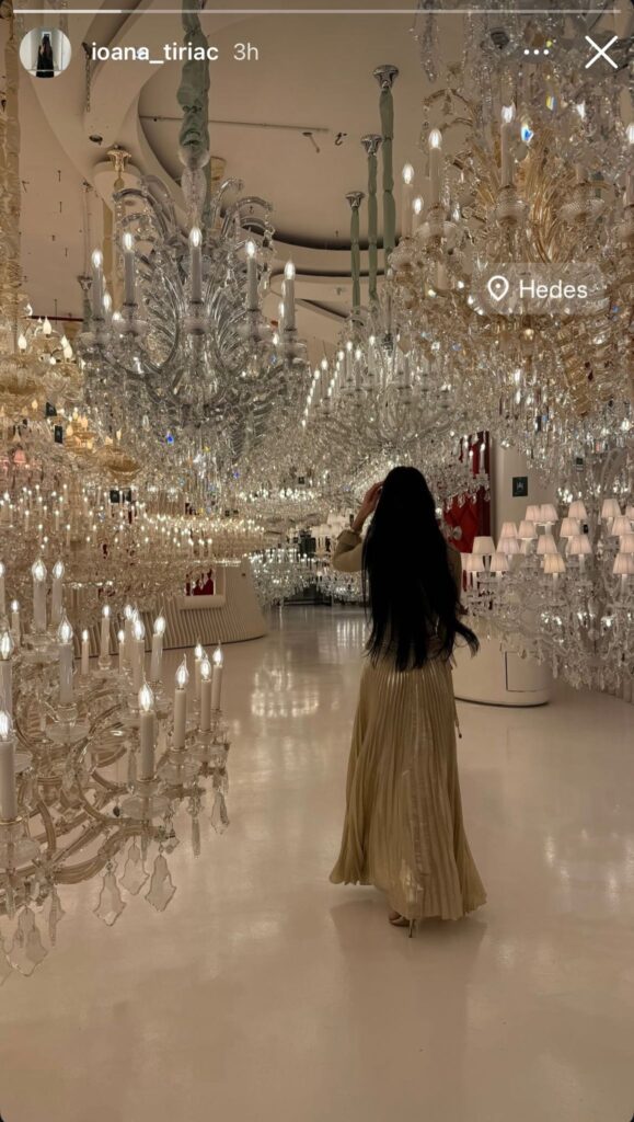 Fiica miliardarului tocmai s-a fotografiat într-un magazin de lux din Dubai, fundalul imaginii fiind unul impresionant. Ioana Ţiriac a purtat o rochie de culoare aurie, care a atras toate privirile, iar în jurul ei erau doar candelabre spectaculoase, scrie as.ro.