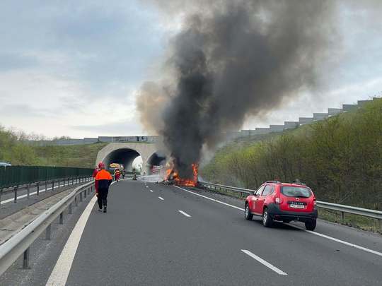 Un camion care transportă fructe a luat foc, luni, pe autostradă, în judeţul Hunedoara, traficul în zonă fiind blocat. Şoferul a reuşit să iasă, dar a suferit atac de panică.