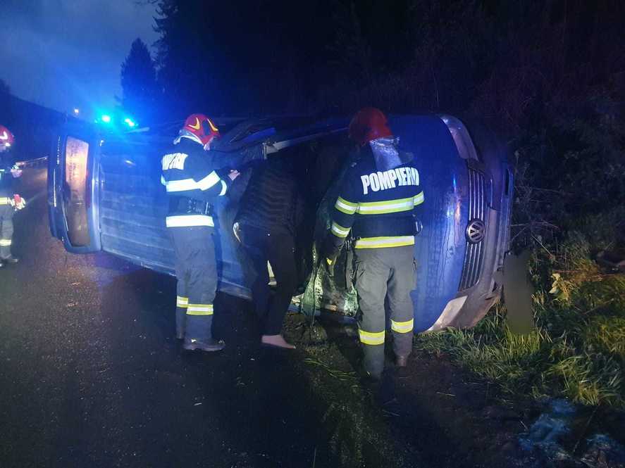 Un microbuz în care se aflau şase persoane s-a răsturnat, luni seară, în judeţul Bistriţa-Năsăud, cinci femei fiind rănite şi transportate la spital. Accidentul a avut loc pe Drumul Naţional 17C, în localitatea Liviu Rebreanu.