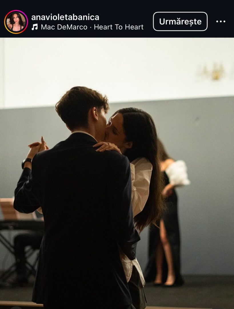 Violeta a postat pe pagina de Instagram o fotografie plină de romantism alături de iubitul său. Fiind la o petrecere, cei doi dansau și se țineau de mână în timp ce se sărutau pasional. Se pare că fiica Andreei Marin vrea să-l țină pe partenerul ei departe de lumina reflectoarelor, fața acestuia nevăzându-se în imagine.