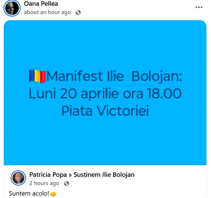 În paralel, pe Facebook a fost creat grupul „Susținem Ilie Bolojan”, care a strâns deja zeci de mii de membri și funcționează ca platformă de mobilizare. Actrița Oana Pellea a distribuit anunțul privind protestul pe rețelele sociale, semnalând susținerea pentru premier.